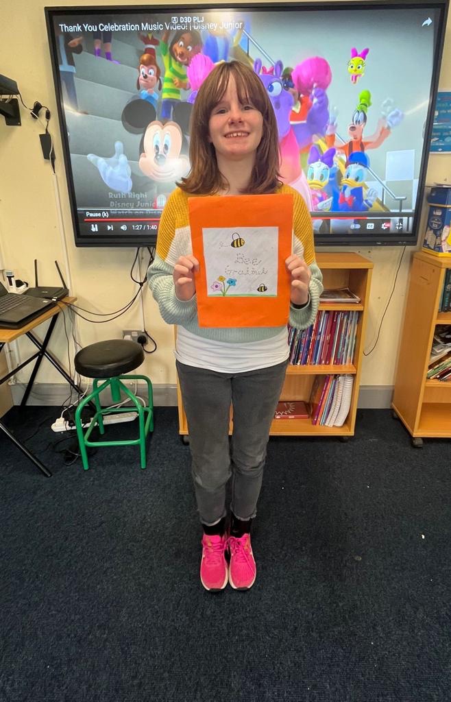 We gave out all our usual awards and then we were all very excited to wish Ms Gray well. She will not be at assembly next Friday because she is getting married!Such exciting news for us all. We gave her some flowers and everyone in the school made her a special book full of love and best wishes for a wonderful wedding day and a very happy marriage!