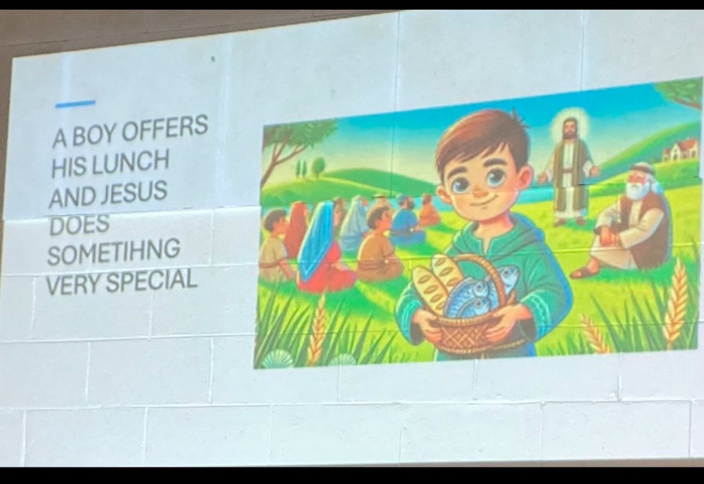 We heard the story of the miracle of the loaves and fishes when a little boy was kind enough to share..