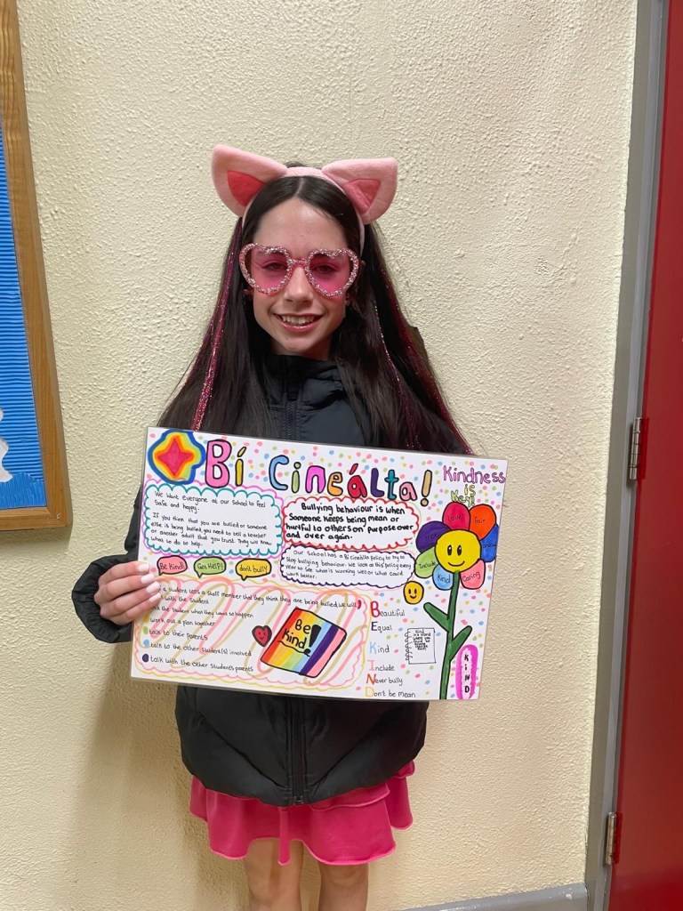 Here are the winners of the ‘Bí Cineálta’ competition and the raffle. Well done everyone!