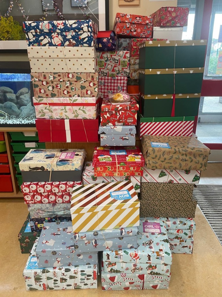 Team Hope Shoeboxes. This year we collected and filled 72 shoeboxes for Team Hope. These boxes will go to make sure that children in Eastern Europe or North Africa have a gift at Christmas. Thank you everyone!