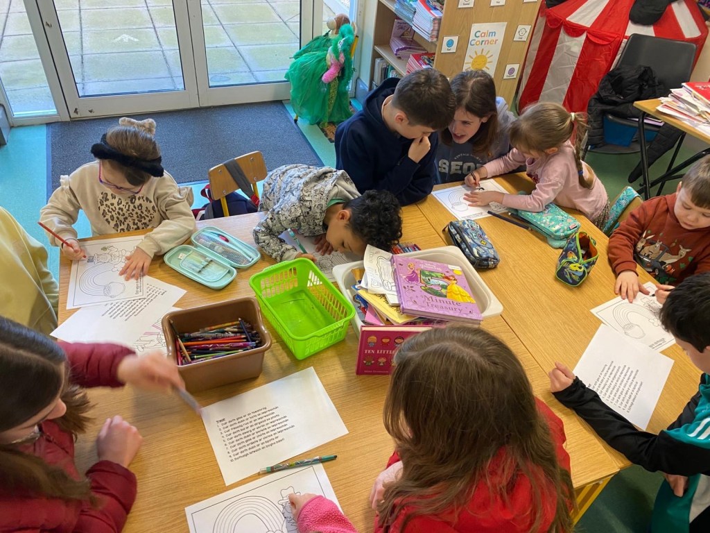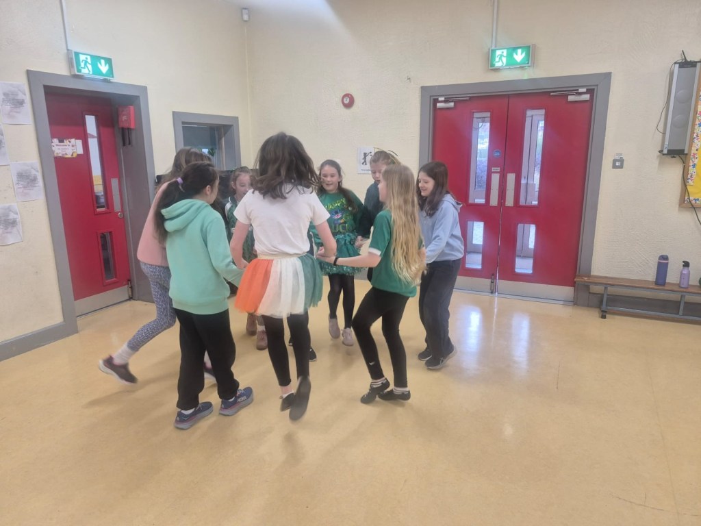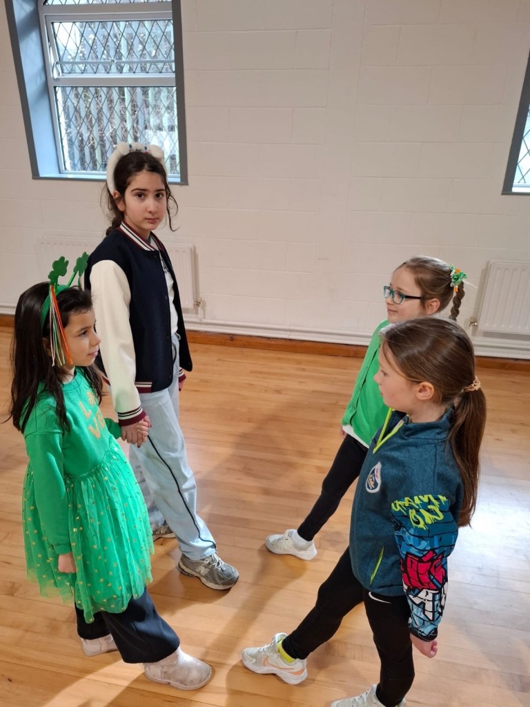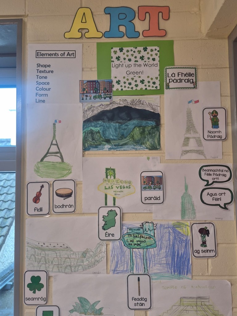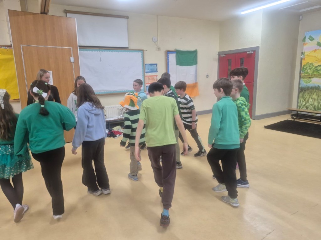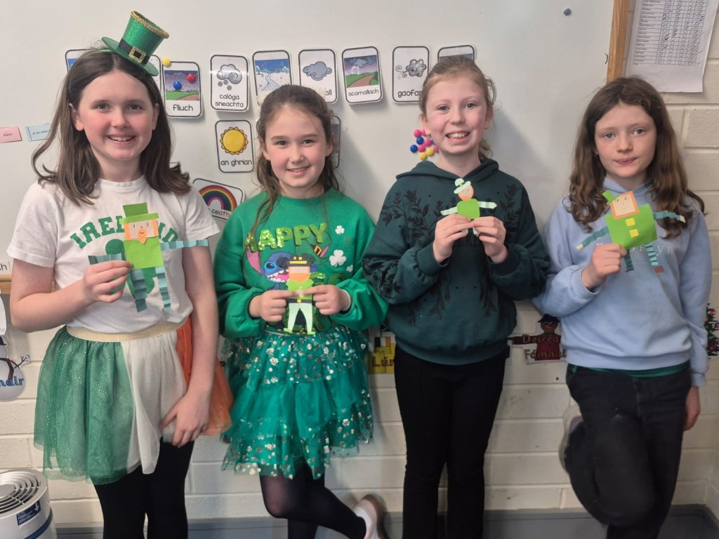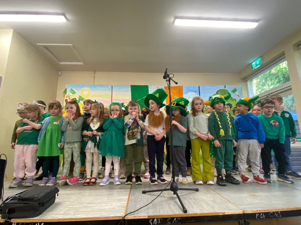 Bhí am iontach ag gach duine i CNS. Bhí gach duine gléasta suas agus bhí paráid againn sa scoil mar bhí ag cur báistí.