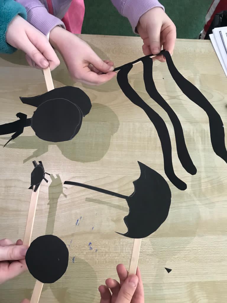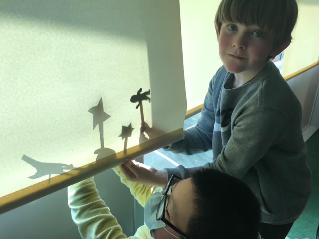 Third Class made shadow puppets to create scenes as part of a STEM programme activity. They changed their puppet to make different shapes and sizes. They learned about light being transparent, translucent and opaque.