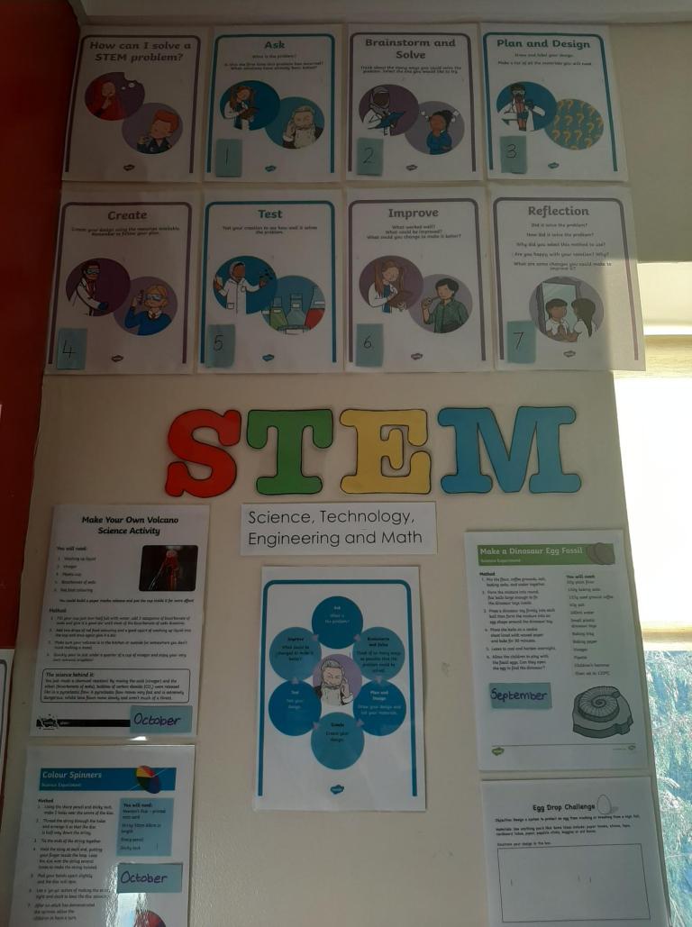 Fifth Class have been working hard completing many different STEM activities this year, from creating colour spinners to exploding volcanos. The children really enjoy the opportunity it gives them to experiment and problem solve.